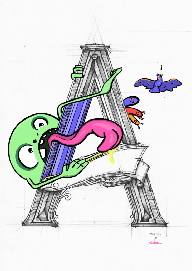 One letter, two styles, digital art and pencil and lots of fun! Collab with fantastic lettering artist Tomasz Biernat (www.tomaszbiernat.us)
